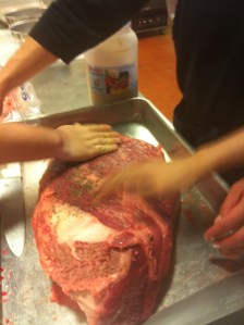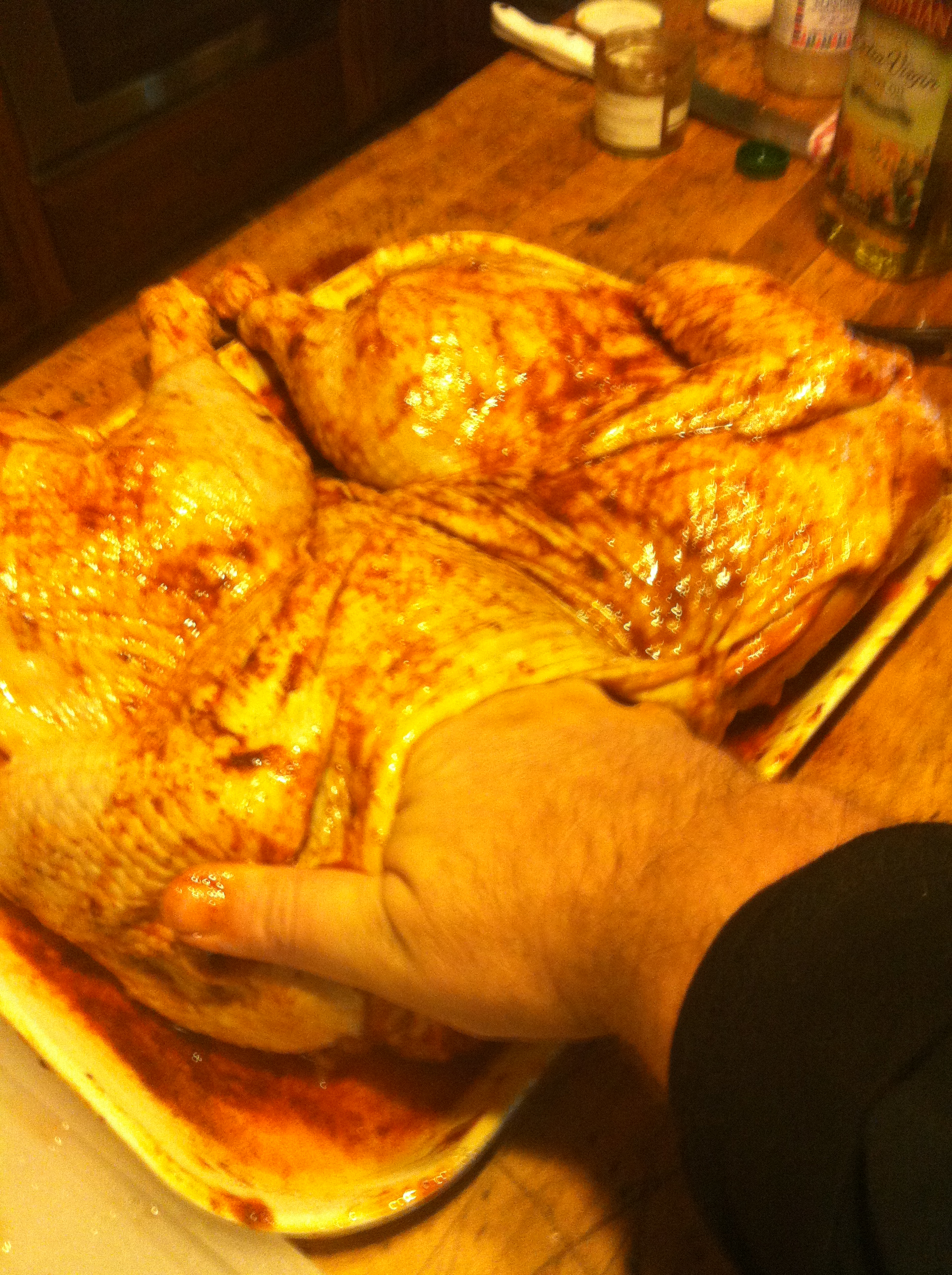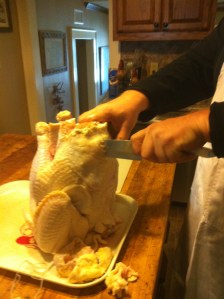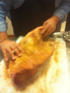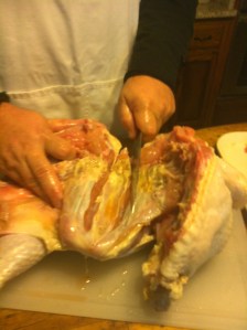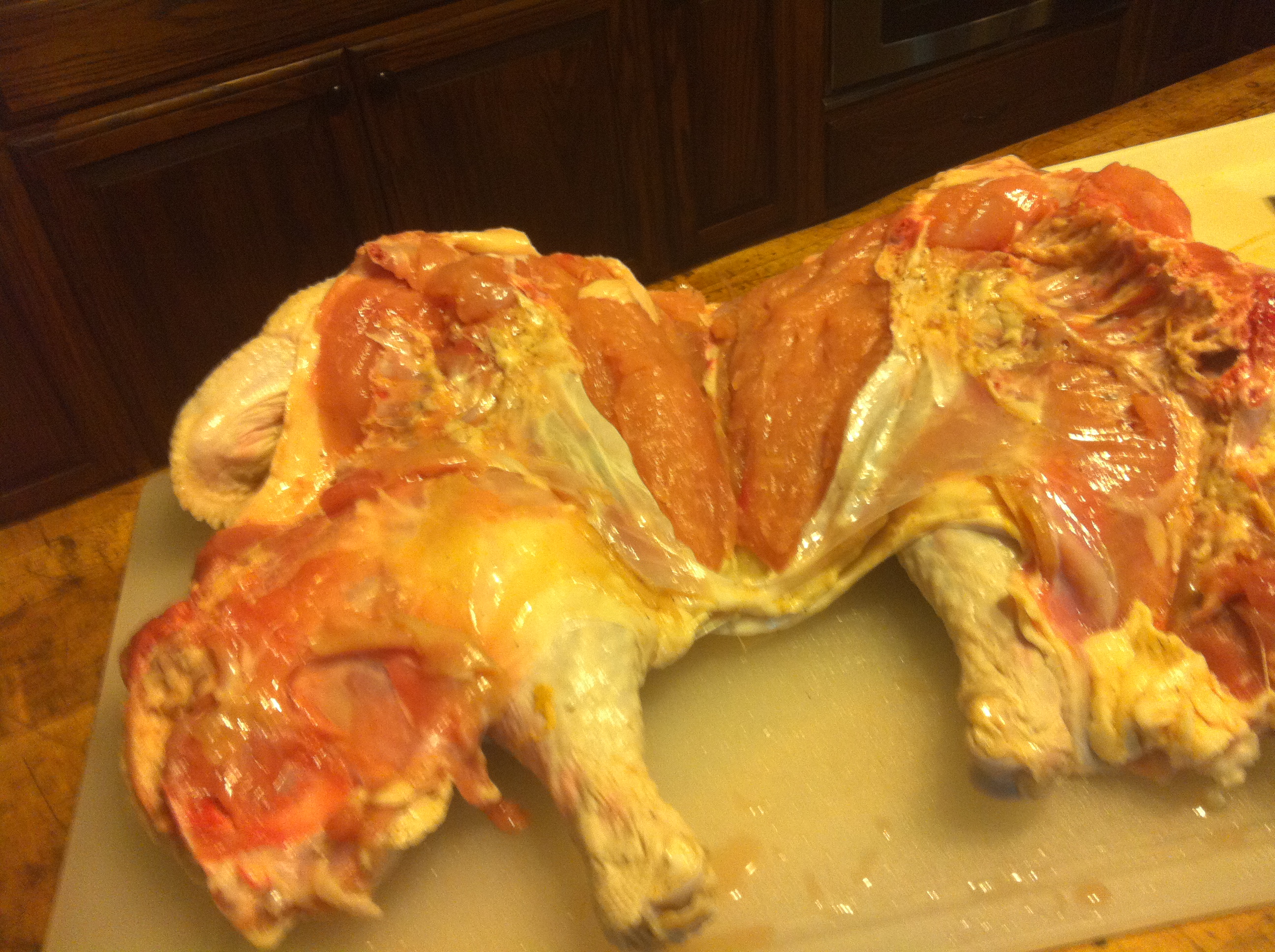 - Trim breast and pound to an even thickness. (use a rolling-pin to pound the breast)