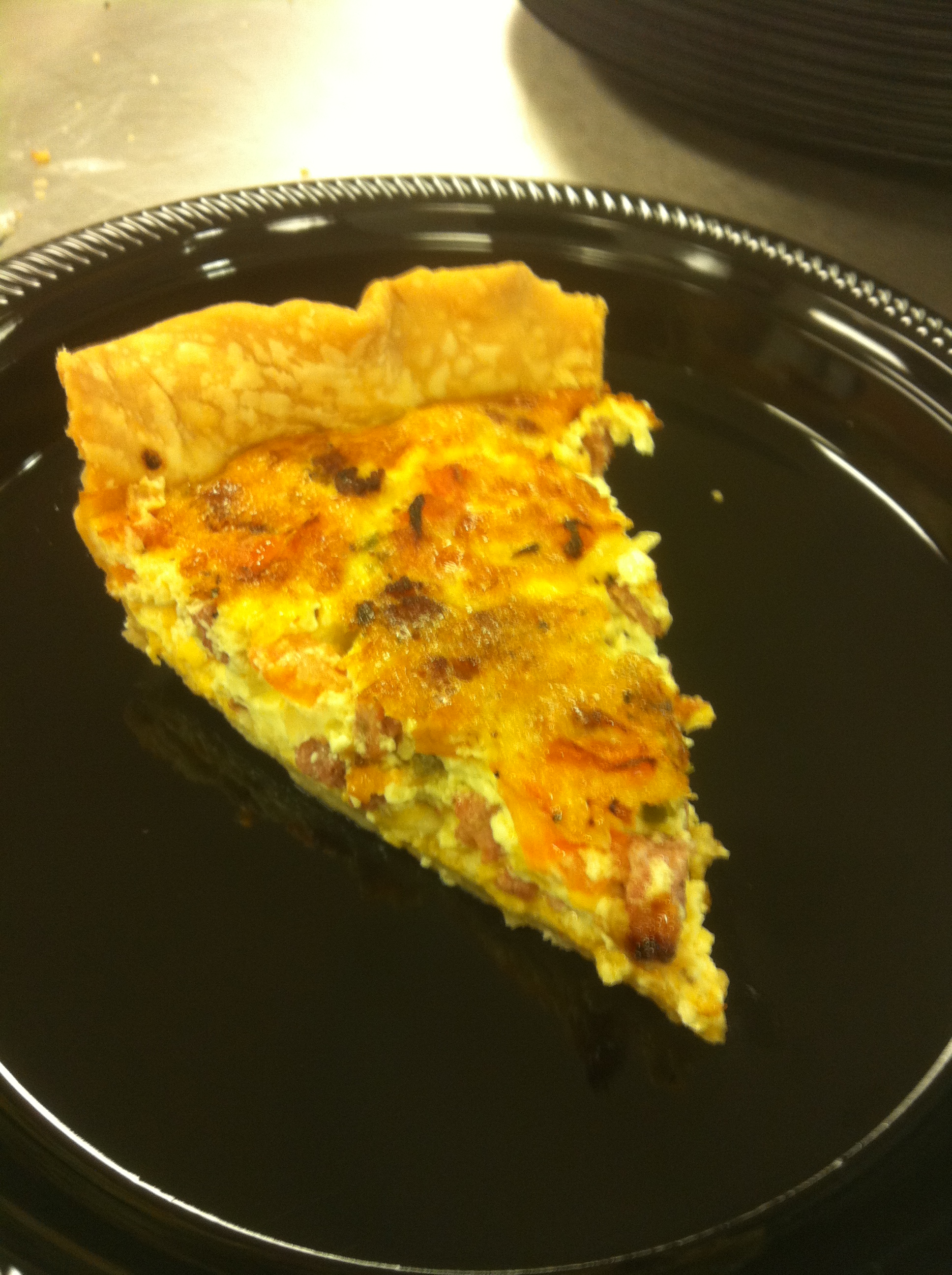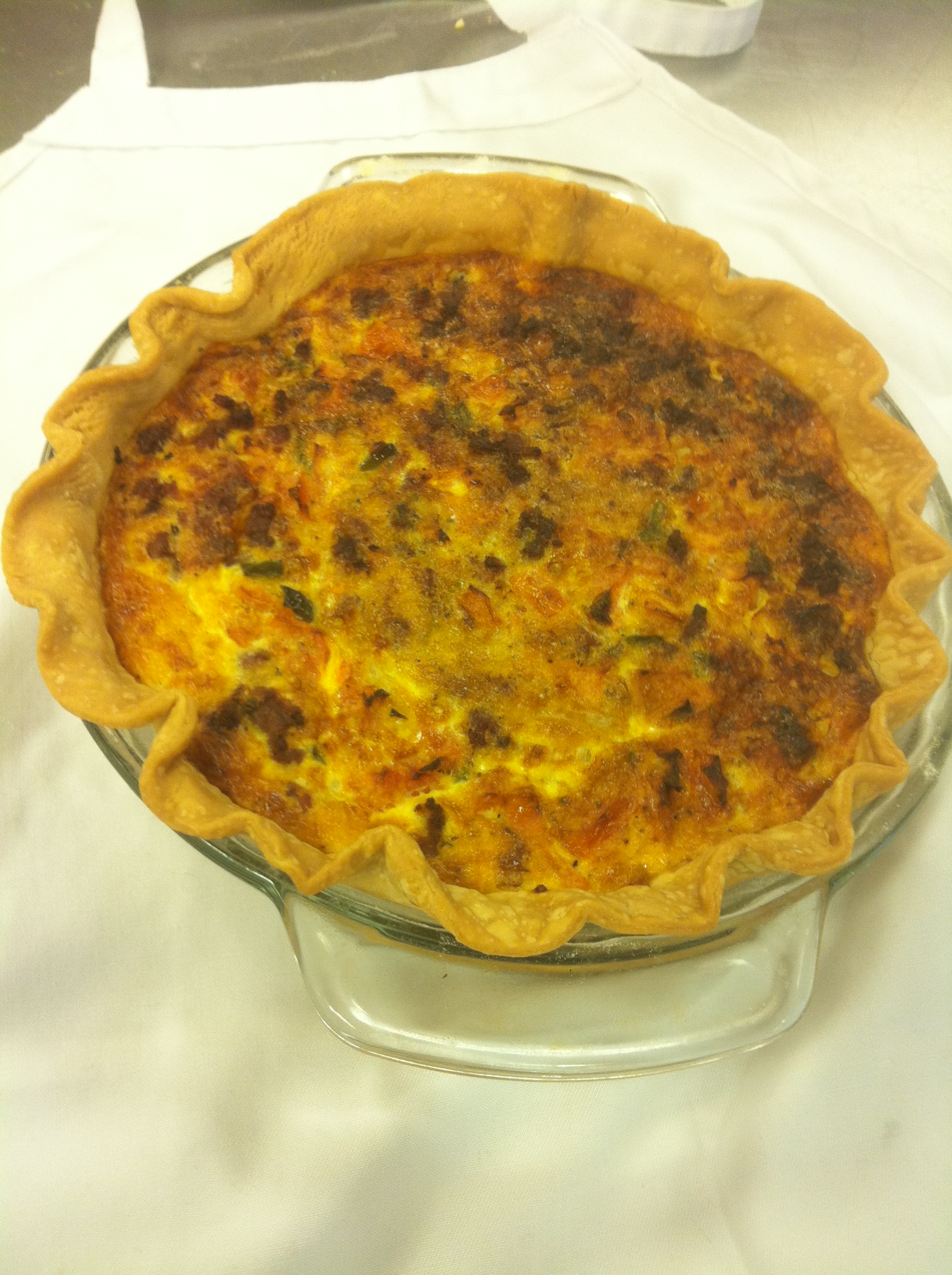 I spent the day making Quiche. The French teacher brought his classes down to try a little french cuisine. I had a few quiches already made, so I would make one for the class then let them help my students make a few more. So by the end of the day we had made about 20. I had the kids cook a classic ham and cheese quiche, a spinach one and a broccoli one. We also made two southwestern quiches. They were all excellent, but as you would guess the spicy ones were my favorite. If you have never tried quiche then it’s about time and this is an easy one to make.
