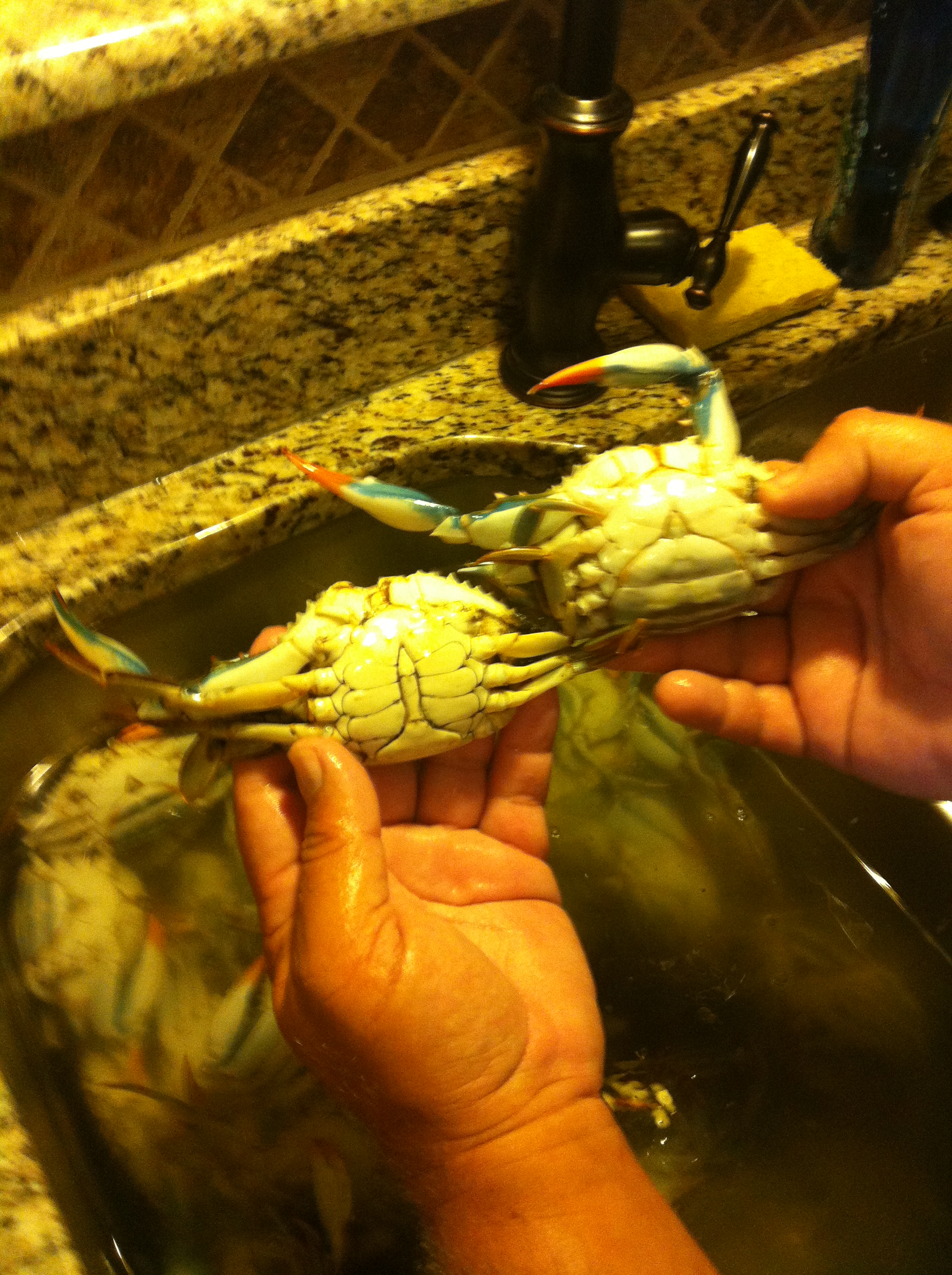 As I have said before I love sea food and this is one of my favorites. I have an Aunt that is from Biloxi and she makes the best crab stew. I remember eating it as a kid growing up. I had not had any of Aunt Doris’s stew for years so I made a deal with her. I would bring fresh blue crabs home and she would teach me how to make it. Before I left Aransas Pass the other day I bought every live crab I could find. I wound up with 69.