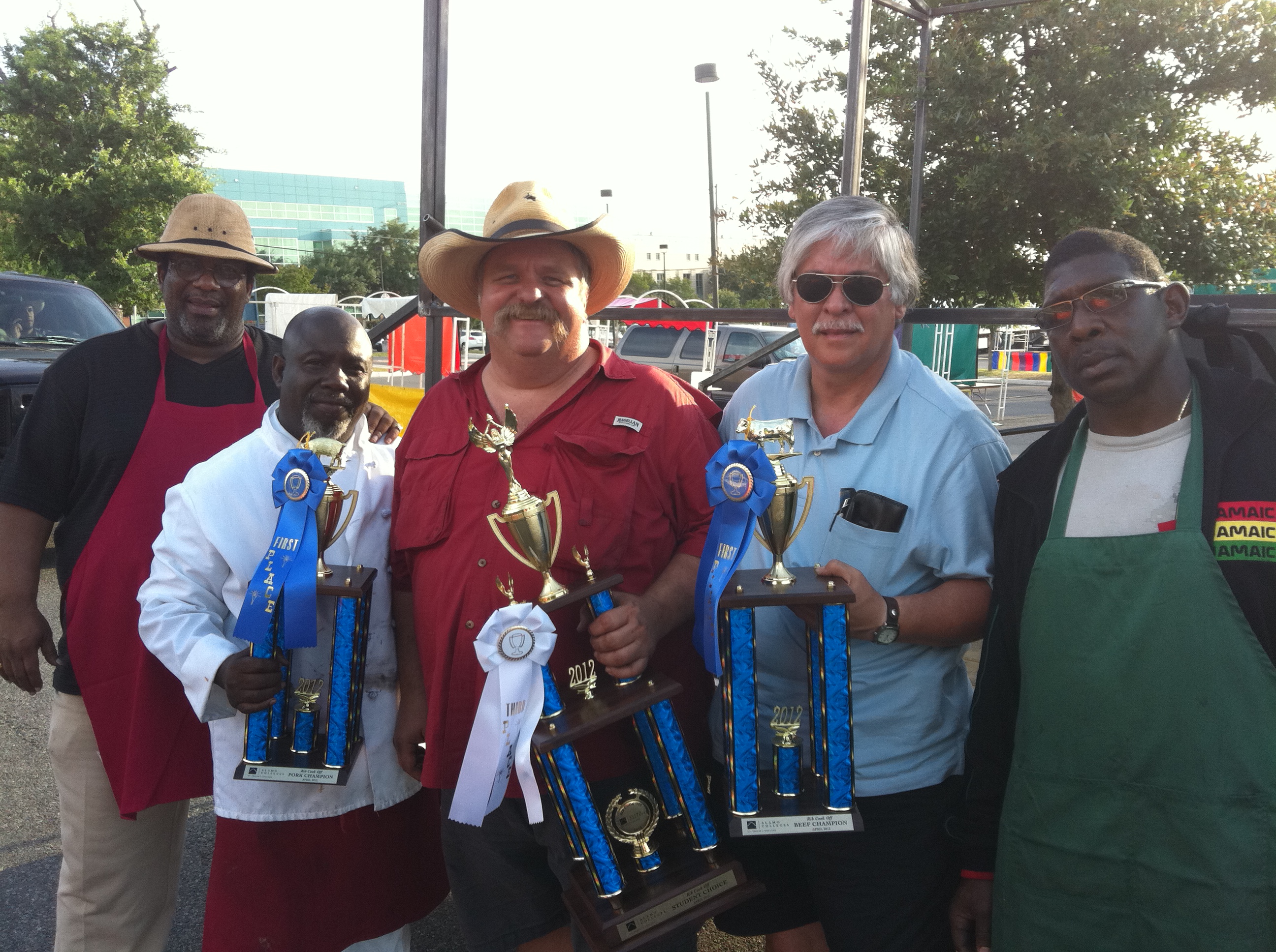 We had an excellent year in competition BBQ this year. we had many 1st place finishes a Reserve Grand Champion and a Grand Championship. At the Fiesta events we cleaned house with our ribs. We entered two teams so we could try some new recipes. We won 1st and 3rd in pork ribs, 1st beef ribs and the student choice award for the best ribs. We also wound up on TV, SA Living had us on their show during CultureFest showing off our ribs. It was a blessed 2012, for our competitions, catered events and friendships.