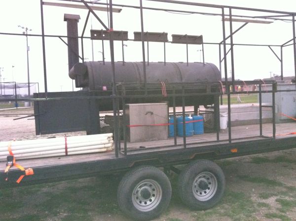 I am down sizing on my BBQ pit. I am going to be using two smaller pits that will cook about what my big reverse flow will. I just plan on selling the pit but is someone is interested I will sell the entire trailer. My pit will cook about 30 briskets or 240 leg quarters. The cooking chamber is 9′ long and 36″ diameter, it has three doors and the fire-box is insulated with 1″ of ceramic insulation. The trailer has a rack for 4 folding tables and 4 18″X 24″ cutting boards. I have a water tank and a stainless steel sink. Let me know if you are interested in it or let you friends know and maybe they will be.