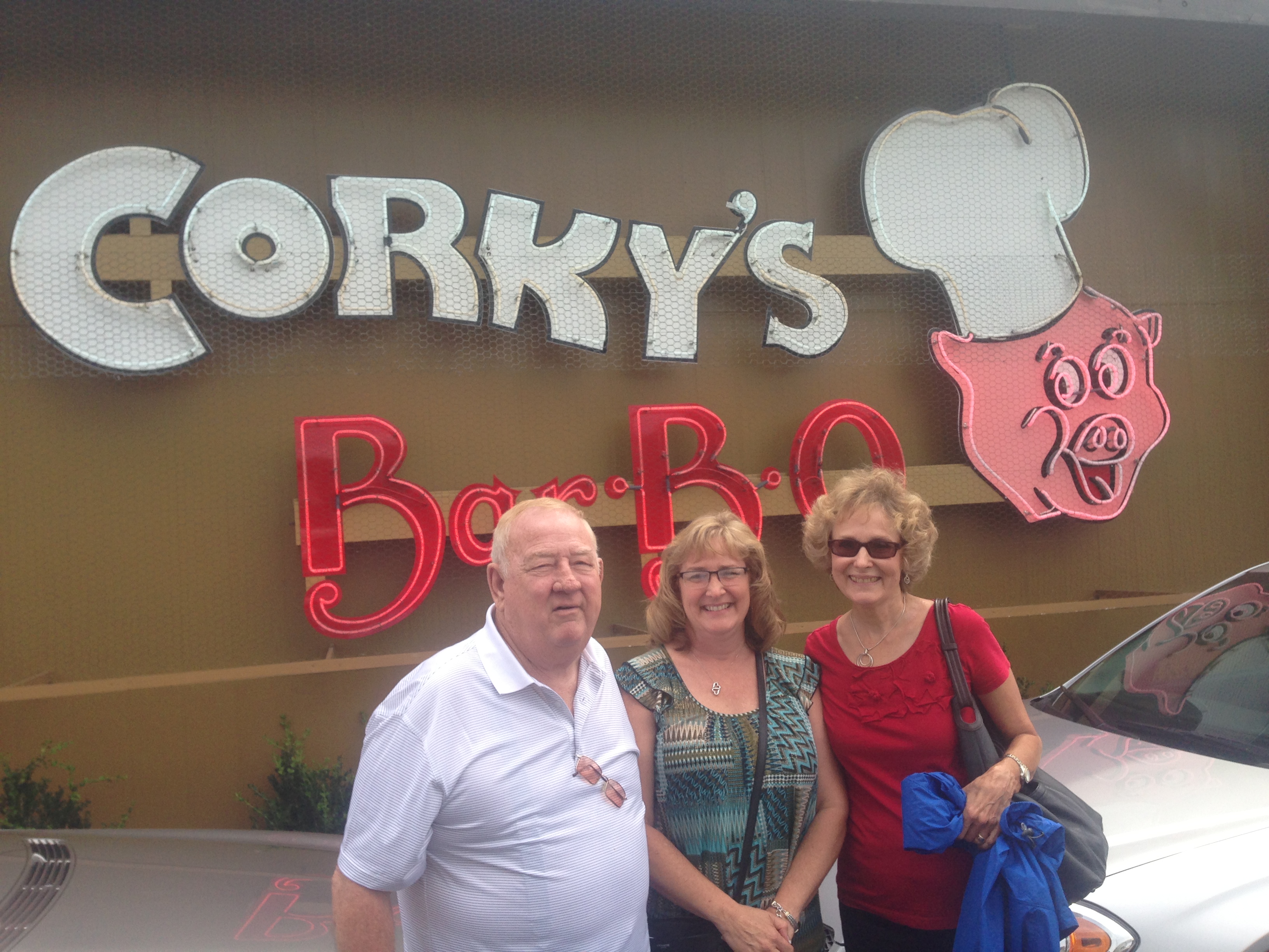 Once we finished lunch, we loaded into the truck and headed to Memphis. Now this is the BBQ city I had been waiting for. Our first day there we headed straight to Sun Records and then to the Rock and Roll and Blues Museum. For lunch we headed to Corky’s. Corky’s had been selling ribs since 1984. I ordered a rack of ribs half wet and half dry, Libby got a half chicken and her parents got chopped chicken and chopped beef sandwiches. Everyone loved their  meal and the service was excellent. Now my wet ribs were some of the best, but I can’t say that about the dry side. I thought the dry was way over seasoned. It seemed they had just dumped the rub on top of the wet so it would stick. The sides were all delicious and so was the variety of sauces they had, we left full and happy.